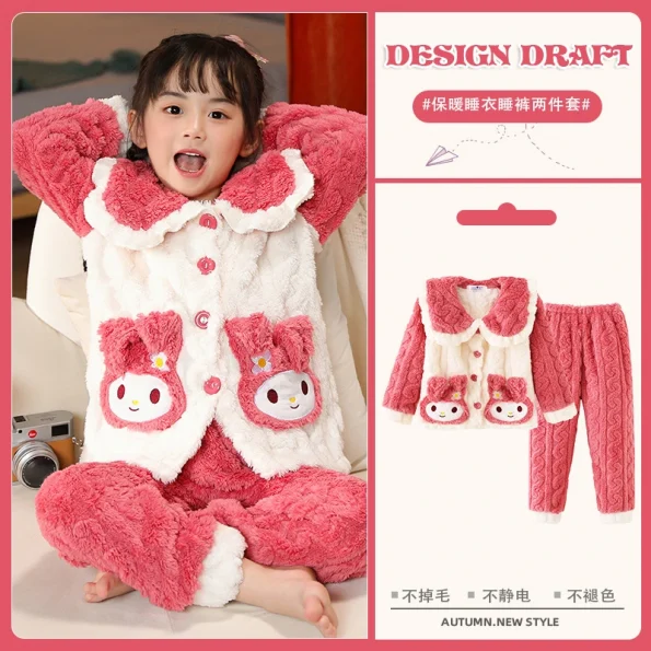 Children’s pajamas girls winter thick coral velvet doll collar little girl middle and large children jacquard velvet home clothes set