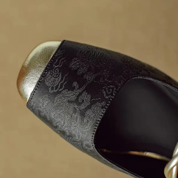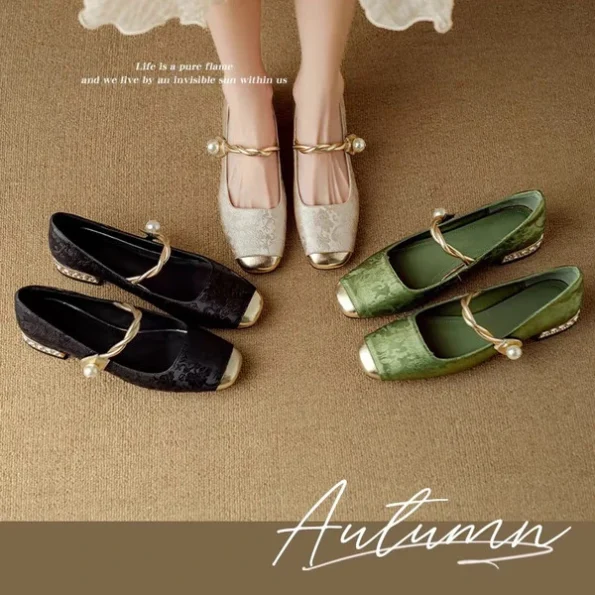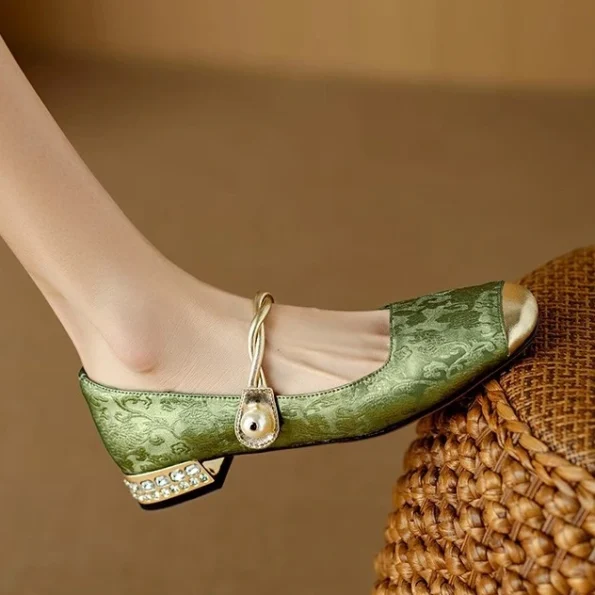 New Green Embroidery Chinese Style Rhinestone French Mary Jane Single Shoes Women’s Flats with Skirt