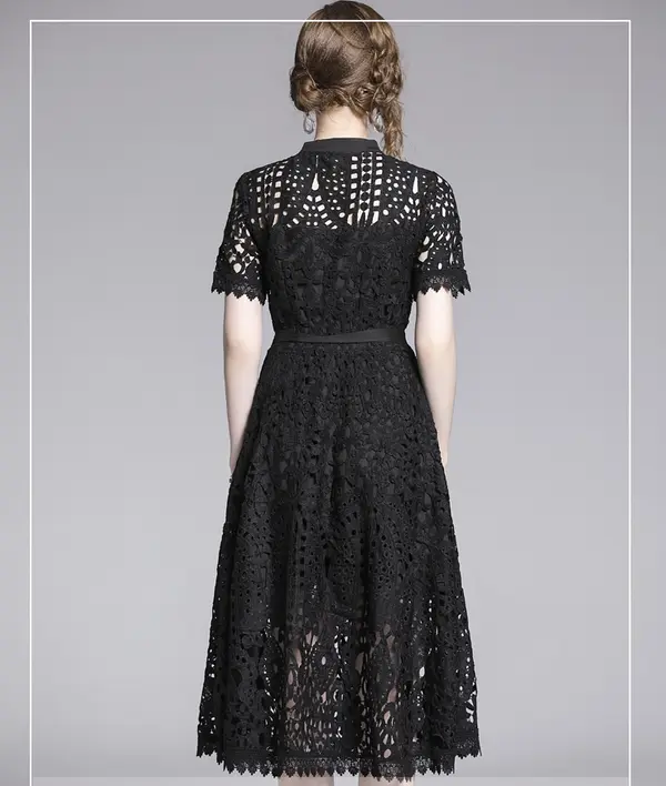 French retro celebrity style, celebrity temperament,t dres, s-skinny, g-hollow lace, short-sleeved dress, female summer dress