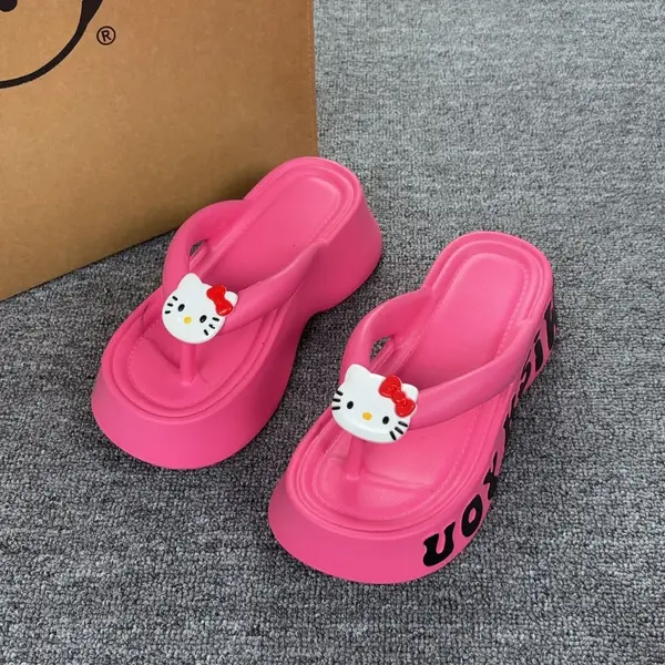 Hello Kitty flip-flops for women to wear as outerwear, new style, super hot, thick bottom, non-slip, shoes