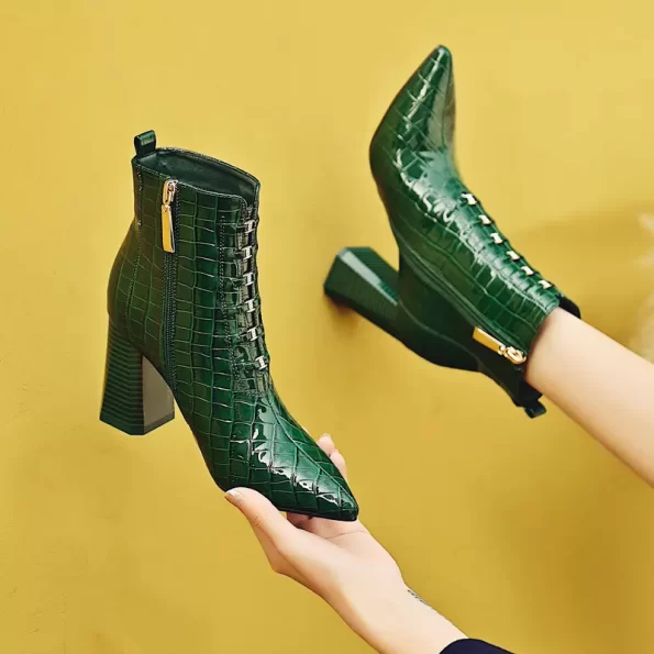 Martin Boots women’s green high-heeled bright patent leather pointed-toe thick-heel shoes