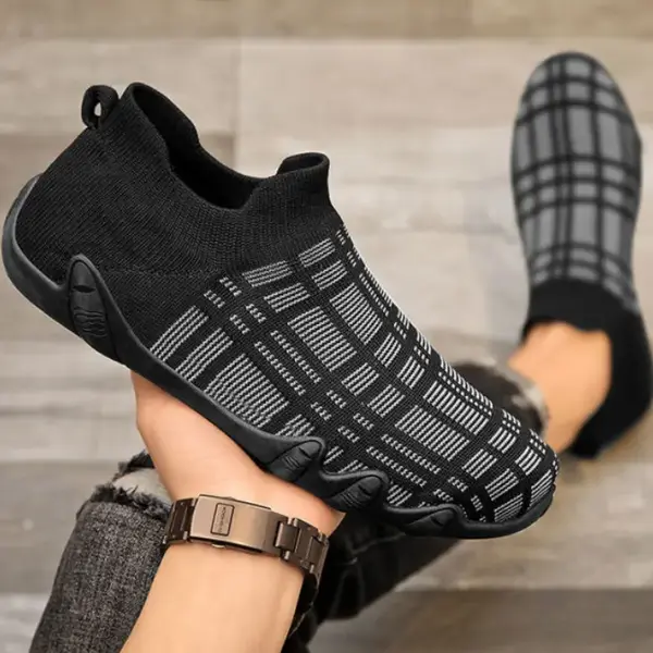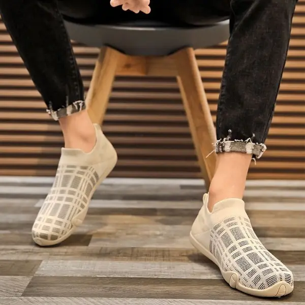 Men’s Summer Mesh Shoes, Flyknit Shoes, Thin, Breathable, Non-slip, Soft Sole, Sports Casual Shoes, Slip-on Men’s Shoes, Trendy