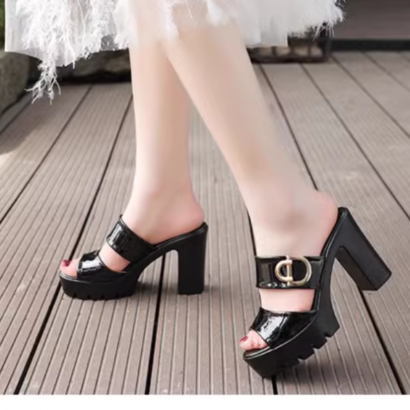 thick high heels women’s shoes new slippers casual women’s patent leather thick high heels shoes