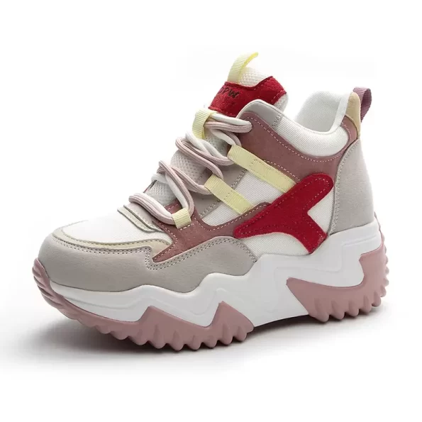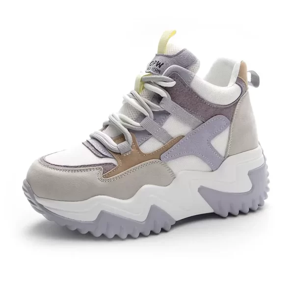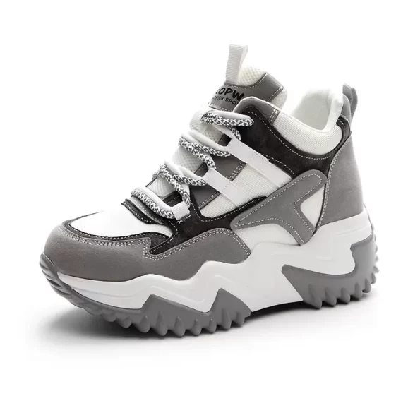 Genuine leather high-top shoes for women with new platform thick soles heightening fashionable casual versatile sports shoes