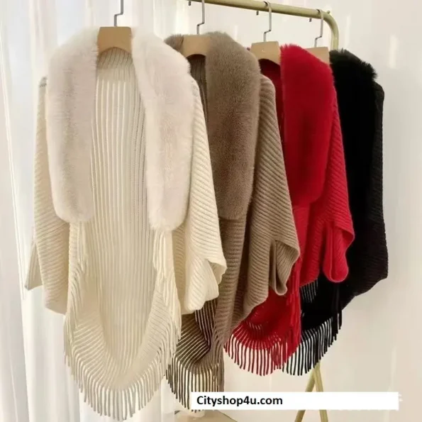 Winter Korean style new fur collar shawl cape coat for women fashionable and noble outerwear loose knitted cardigan