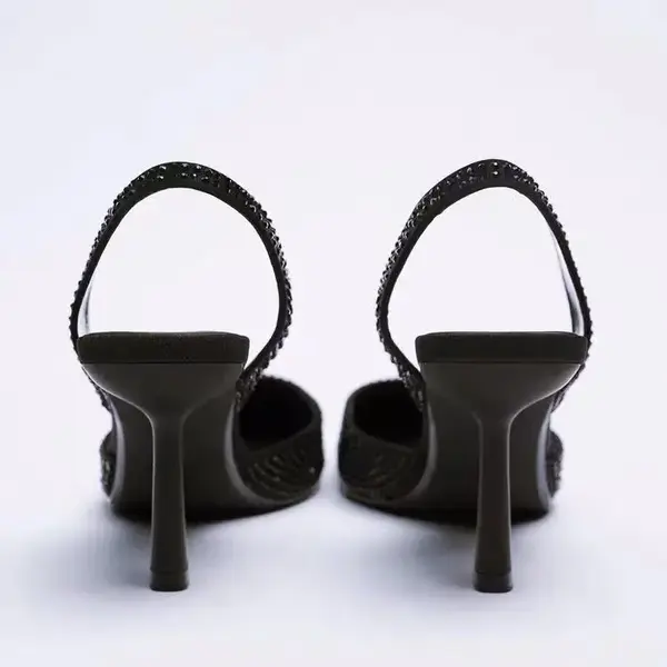 New Spring and Autumn Sandals Women’s High Heels Pointed Rear Empty High Heel Diamond Brightening Muller Women’s Shoes