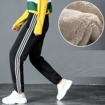 Pants for women in winter, plus velvet, outerwear, striped sports pants, loose outerwear, thickened casual pants, warm sweatpants