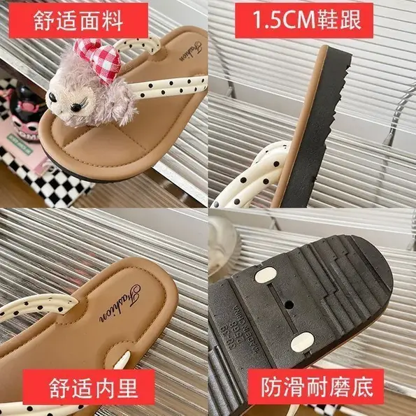 Women’s Shirley May Duffy Bear Flip Flops Cartoon Cute Flip Flops Summer Soft Bottom Fashion Net Red Ins Sandals