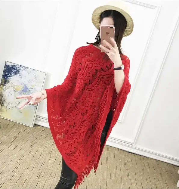 New Fashion Su Cape Shawl Sweater Jacket Women’s Pullover Loose Hollow Bat Sweater Knitted Sweater